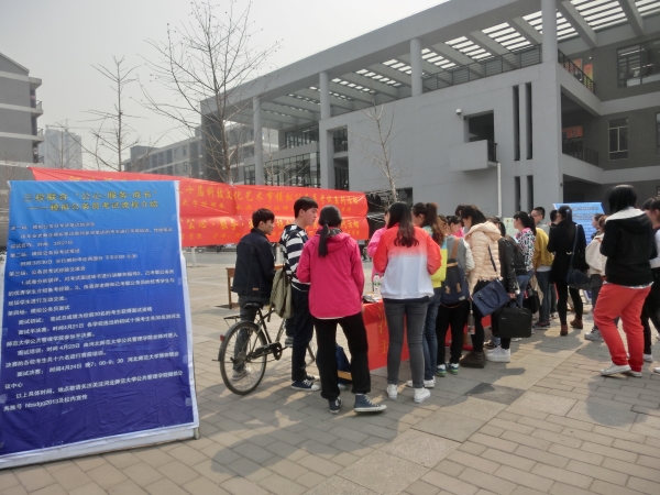 由校团委主办、韩国色情 公共管理韩国色情 联合河北经贸大学公共管理韩国色情 、河北科技大学经济管理韩国色情 共同举办的“石家庄三校联合‘公心•服务•成长’模拟公务员考试系列活动”于4月23日晚圆满落下帷幕。